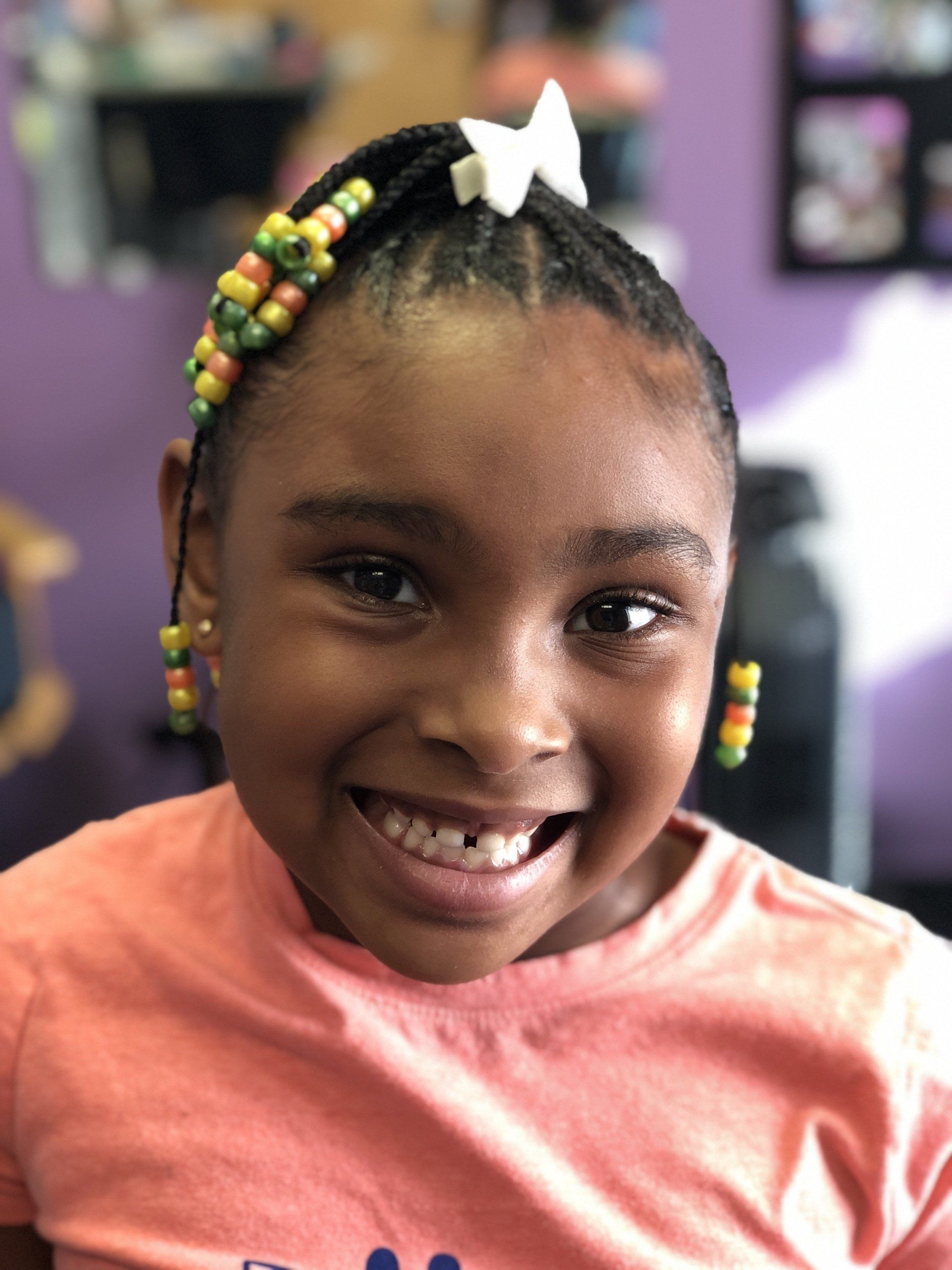 ButtonThis Lil' Cutie's Braids & Beads were styled by Miss April.