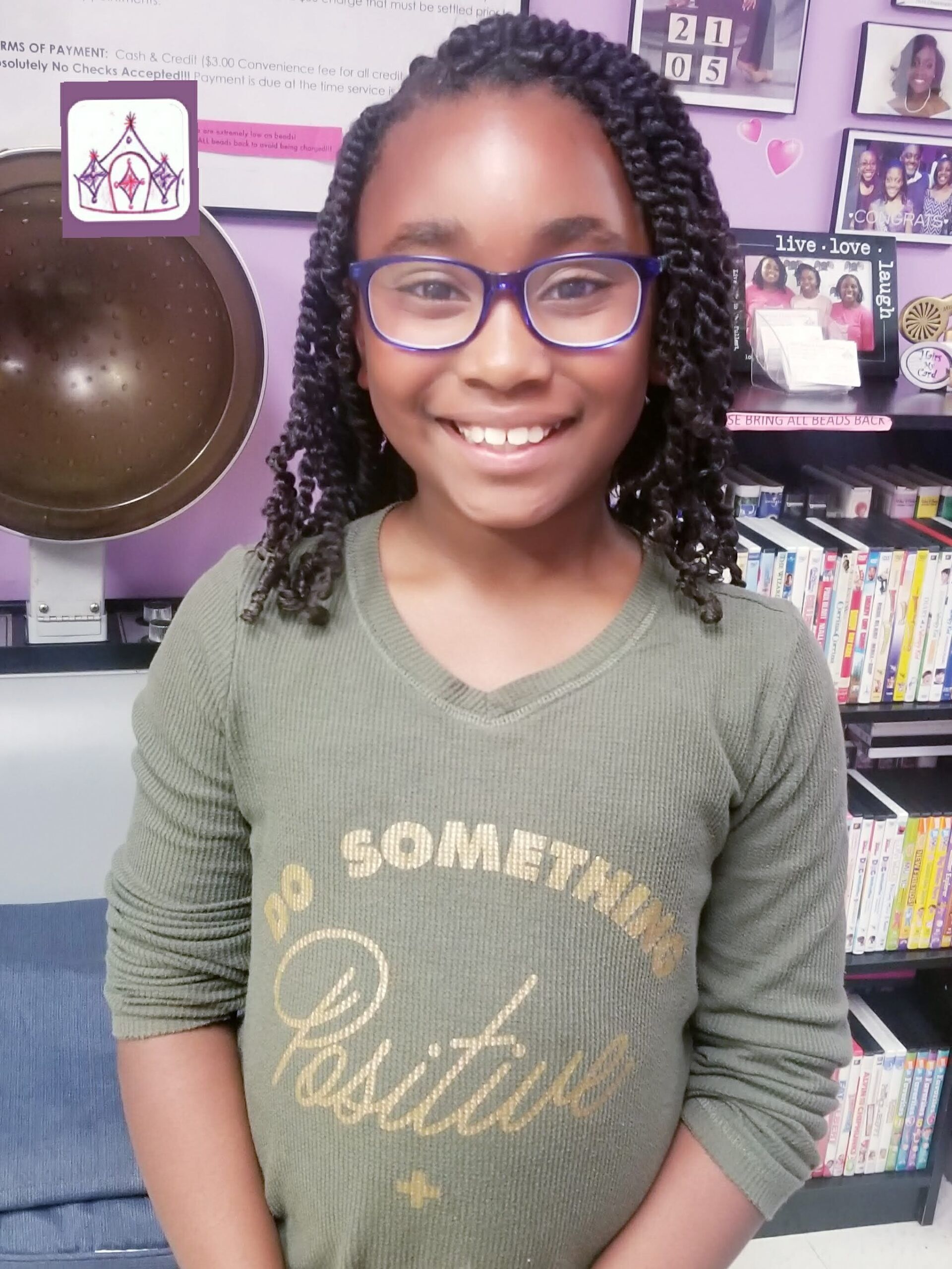 This service includes shampoo, instant conditioner, and a few (8 max.) twisted ponytails. Lastly, the style is completed with pretty bows that easily match pretty church dresses.